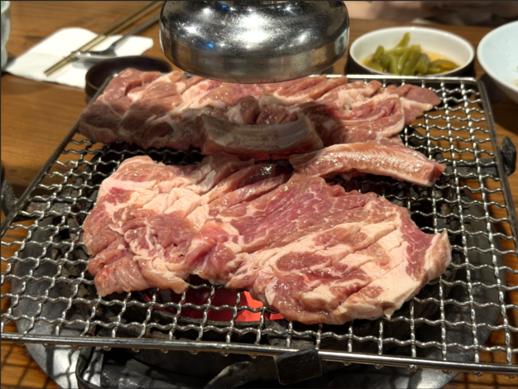 We didn’t come here to just eat K-BBQ; we came for the tasty trio that put this place on the map. The star of the show is undoubtedly the signature marinated pork ribs (Dwaeji-galbi, 돼지갈비). Unlike the overly sugary versions you find elsewhere, this marinade is deep, savory, and well-balanced. Of course, no visit is complete without a bowl of their Pyeongyang Naengmyeon (평양냉면). These cold buckwheat noodles offer a broth that is subtle and clean, yet possesses a “meaty” depth that purists absolutely rave about. Even the side dishes (banchan, 반찬), which by the way are free in Korea, feature elegant pickled greens designed to cut right through the richness of the meat.